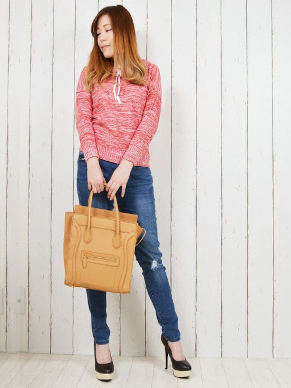 TOPS▶ マーブルニットパーカー \2,689 BOTTOMS▶ スリムダメージデニムパンツ \3,229 SHOES▶バイカラーハイヒールパンプス \2,700