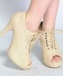 TOPS ▶ ギンガムチェックプリーツカフブラウス \2,149 BOTTOMS▶ デニム前開きマキシカート \3,877 SHOES▶オープントゥレースアップブーティー \2,138