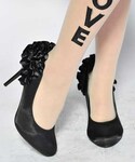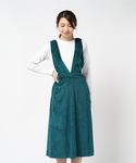 TOPS ▶ 花柄ラインリブブラウス \2,980 BOTOMMS ▶ ベロアサスペンダー付きスカート \3,480 SHOES ▶ フリル付ヒールパンプス \2,480