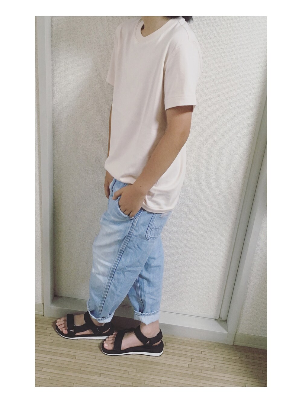 息子コーデ ピンクを着る男子が好き♡ ユニクロのレディースSでダボッと。