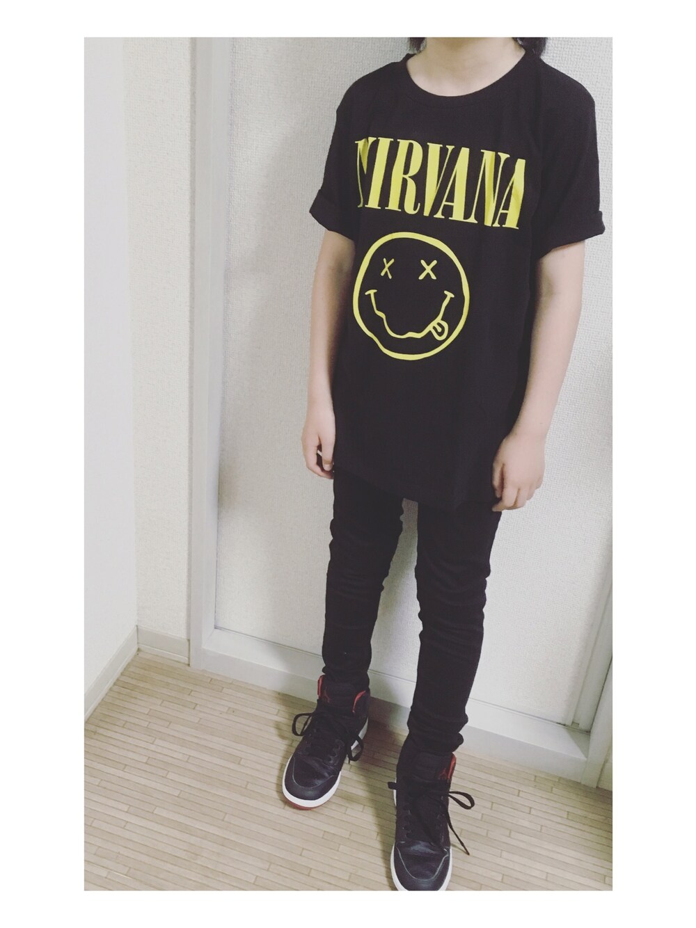 GUのニルヴァーナTeeで真っ黒コーデ。