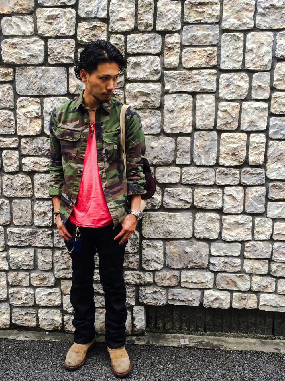 シャツ: ラルフローレン Tシャツ: ヘインズ デニム: アディクトクローズ ネックレス: ゴローズ カモフラ柄のシャツに負けないように、 インナーは赤いTシャツにしてみました。 小物もネックレスの重ね付けや、トートバックにメッシュキャップを付けてPOINTを増やしました。 いや〜それにしても一気に涼しくなりましたね💦 完全なる夏の終わり•••寂しい。 ですが、今日ちょっとだけ嬉しいことが。 原宿を歩いていると、某中華料理店からガタイのいいお兄さんが出てきまして••• ルイスレザーをサラッと羽織り、隣のお綺麗な女性と旅立って行きました••• 9月の初めにライダース••• 本格的に秋冬が近づいて来ていますね。 夏のテンションが1番好きですが、やはりファッションは秋冬ではないでしょうか😎 そろそろ秋物買わないとなぁ★ 今年はイエローのライダースに挑戦したいと思っていますwww