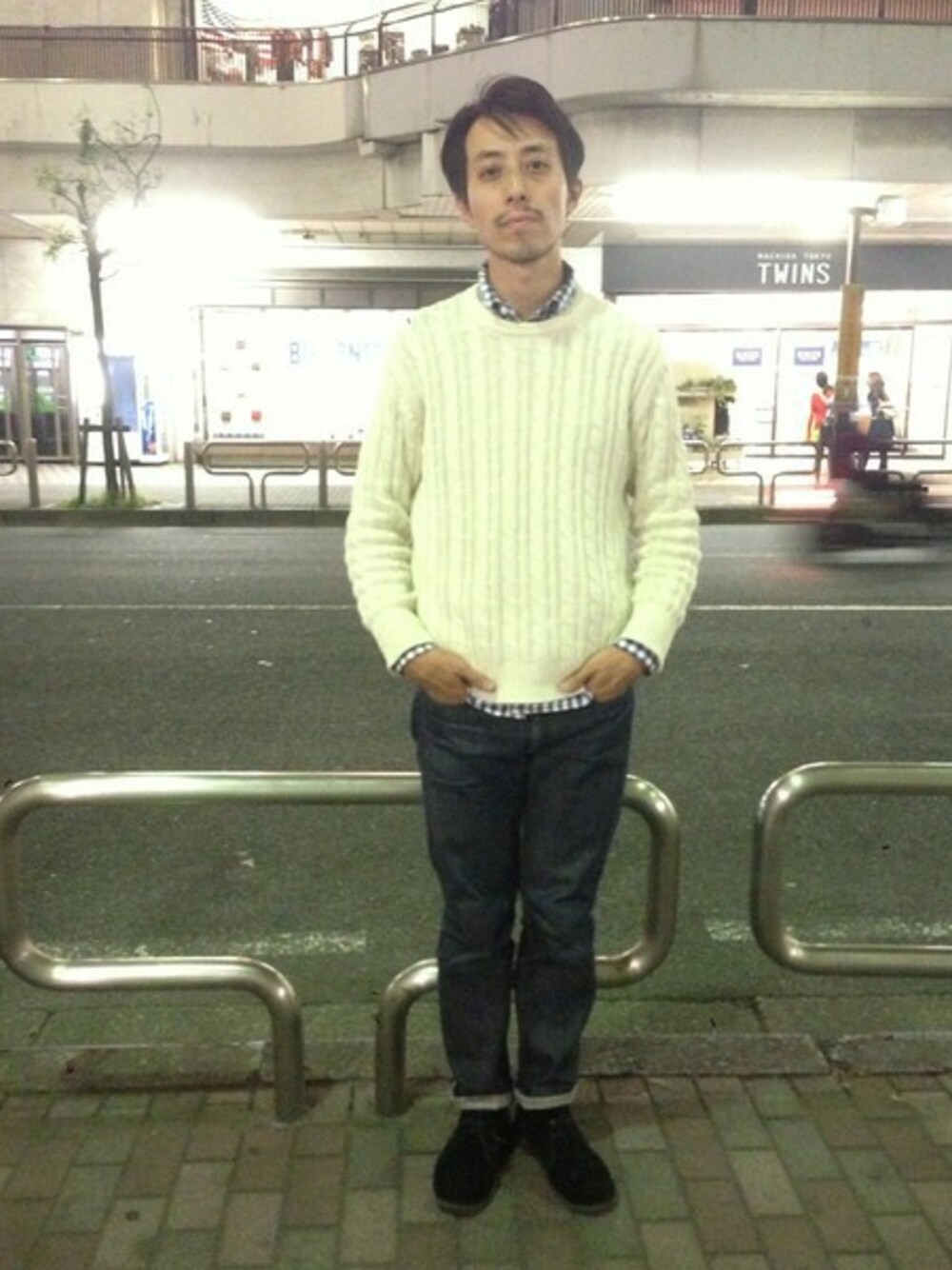 店長のニット/セーター「コットンケーブル クルーネックニット」を使ったコーディネート