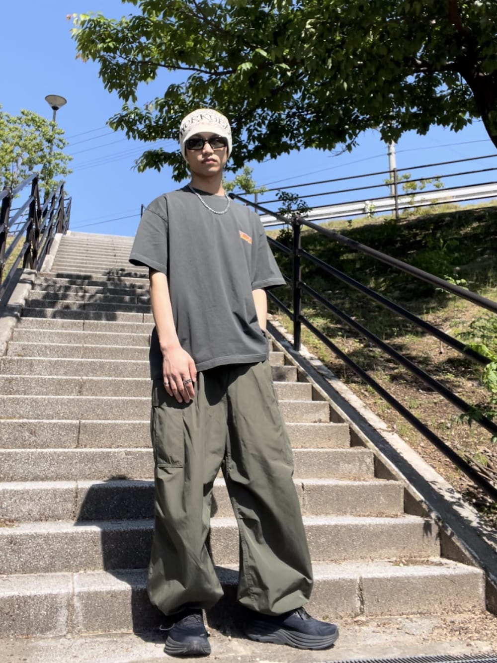 ご覧頂きありがとうございます。 ポイントはベージュのシングルニット帽! 黒とカーキが良い感じにベージュを際立たせてくれます。 またビーニーの赤文字とTシャツの赤いロゴを上手く繋げました! かなり自分も気に入っているコーデなので是非参考にしてみて下さい! ⭕️wear・Instagramのいいね、フォロー よろしくお願いします! ◎Instagram → n_08.5 ご質問等ありましたらdmまでよろしくお願いします。