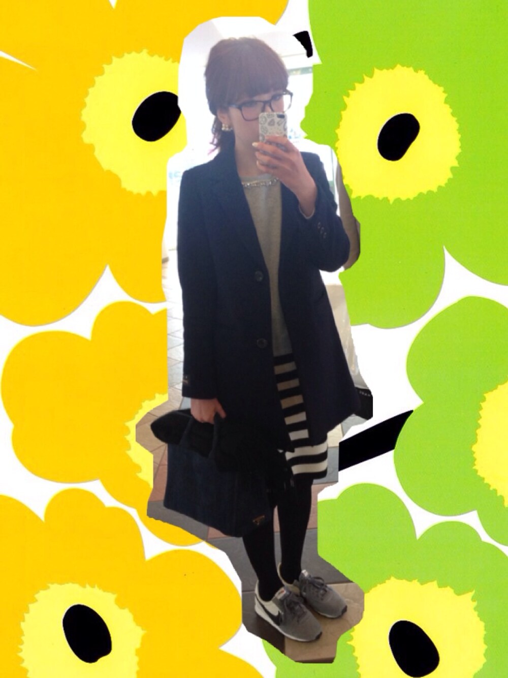 glasses : Ray-Ban coat : nano universe sweat : URBAN RESEARCH skirt : UNITED ARROWS shose : nike bag : PRADA きれいめカジュアルは私のファッションのモットー。 どハマりしてるスニーカーがポイントです♡ モントリオールはワッフルソールがめっちゃ楽!