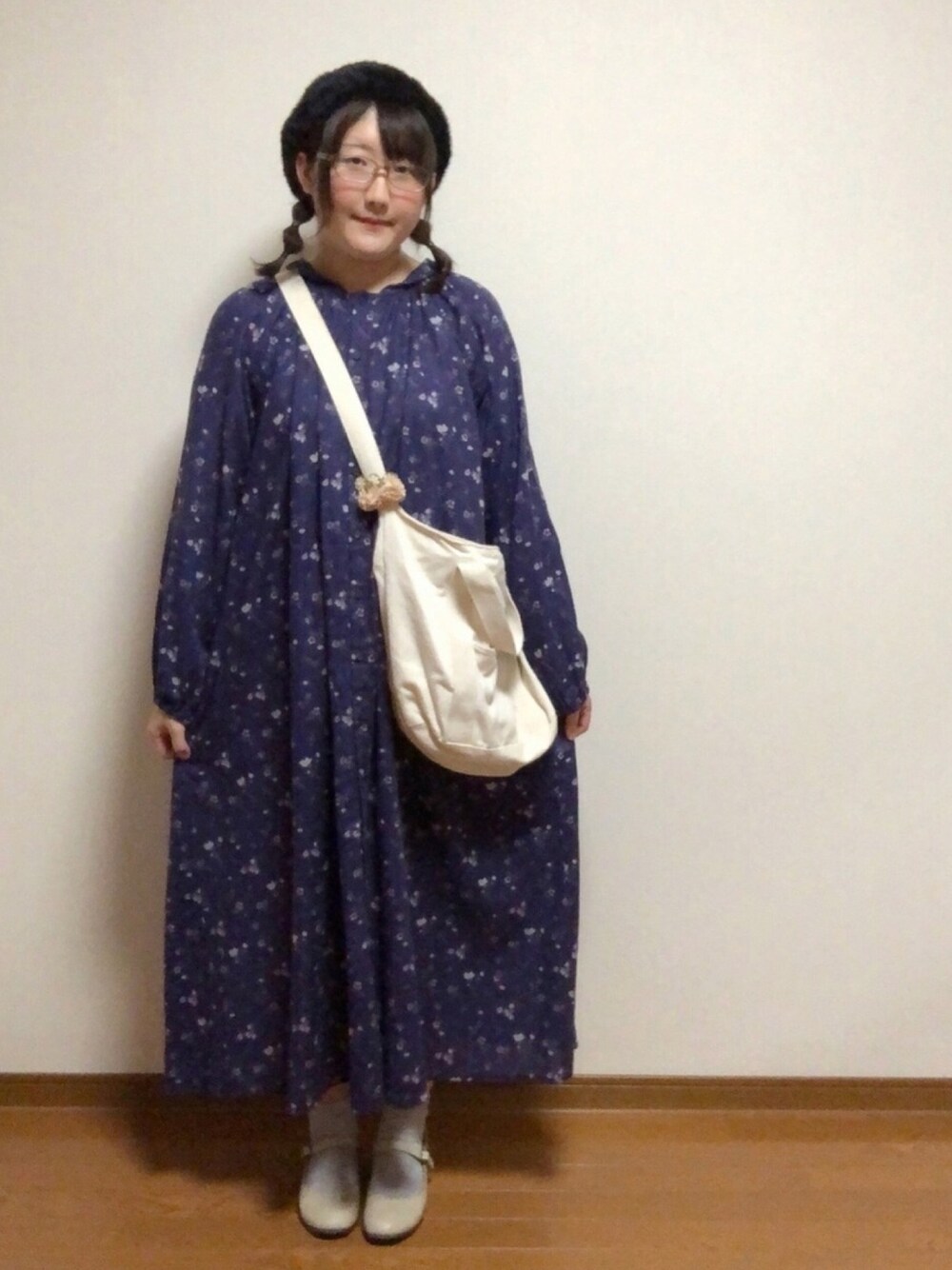 にゃむのワンピース「春の草花柄麻綿前後着ワンピース」を使ったコーディネート