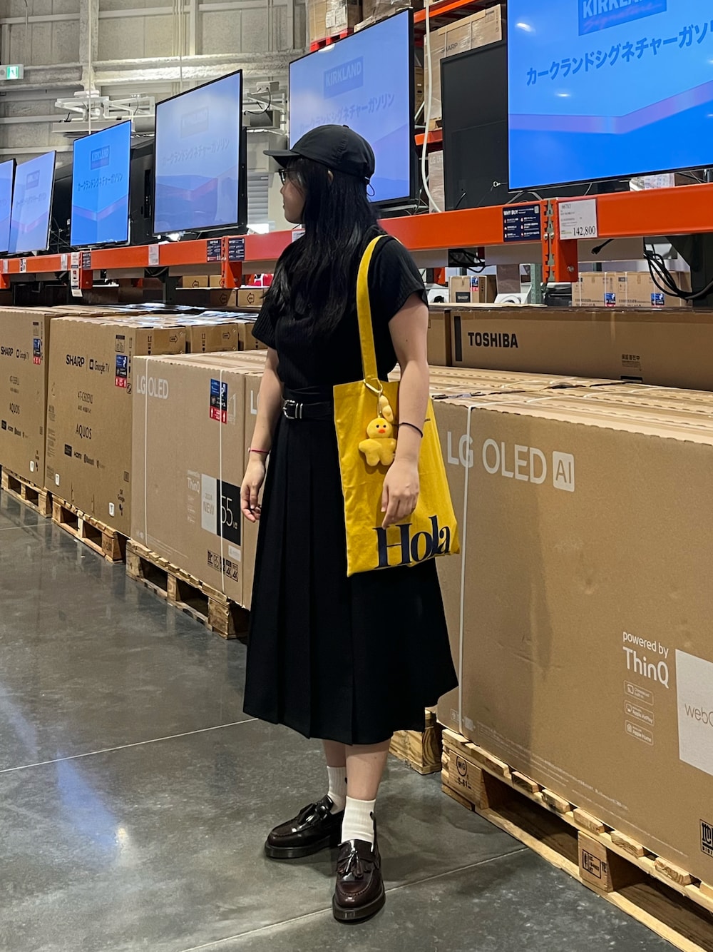 GUのラッププリーツミディスカートには絶対Dr. Martensが似合うと思って着てみた。 真っ黒コーデなので、差し色にイエローを🟨