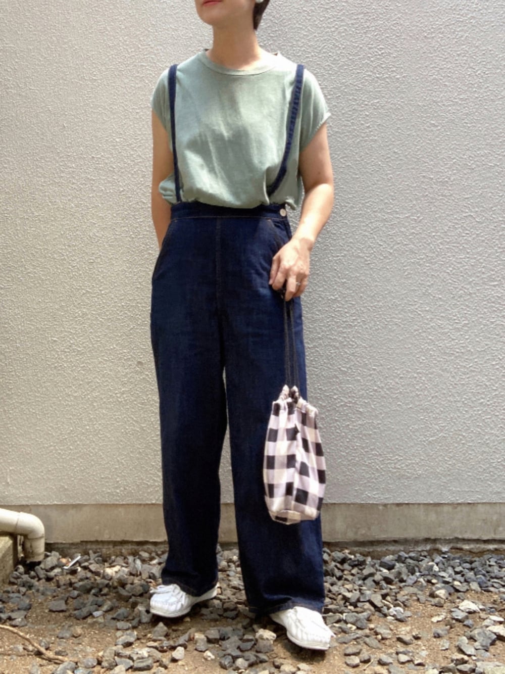 おはようございます☕️𓂃◌𓈒𓐍 いつもリアクション☞📱くださり、 ありがとうございます🙇♀️° ✧ 感謝です🙏 ライトグリーンT×肩紐付きワイドパンツ✽