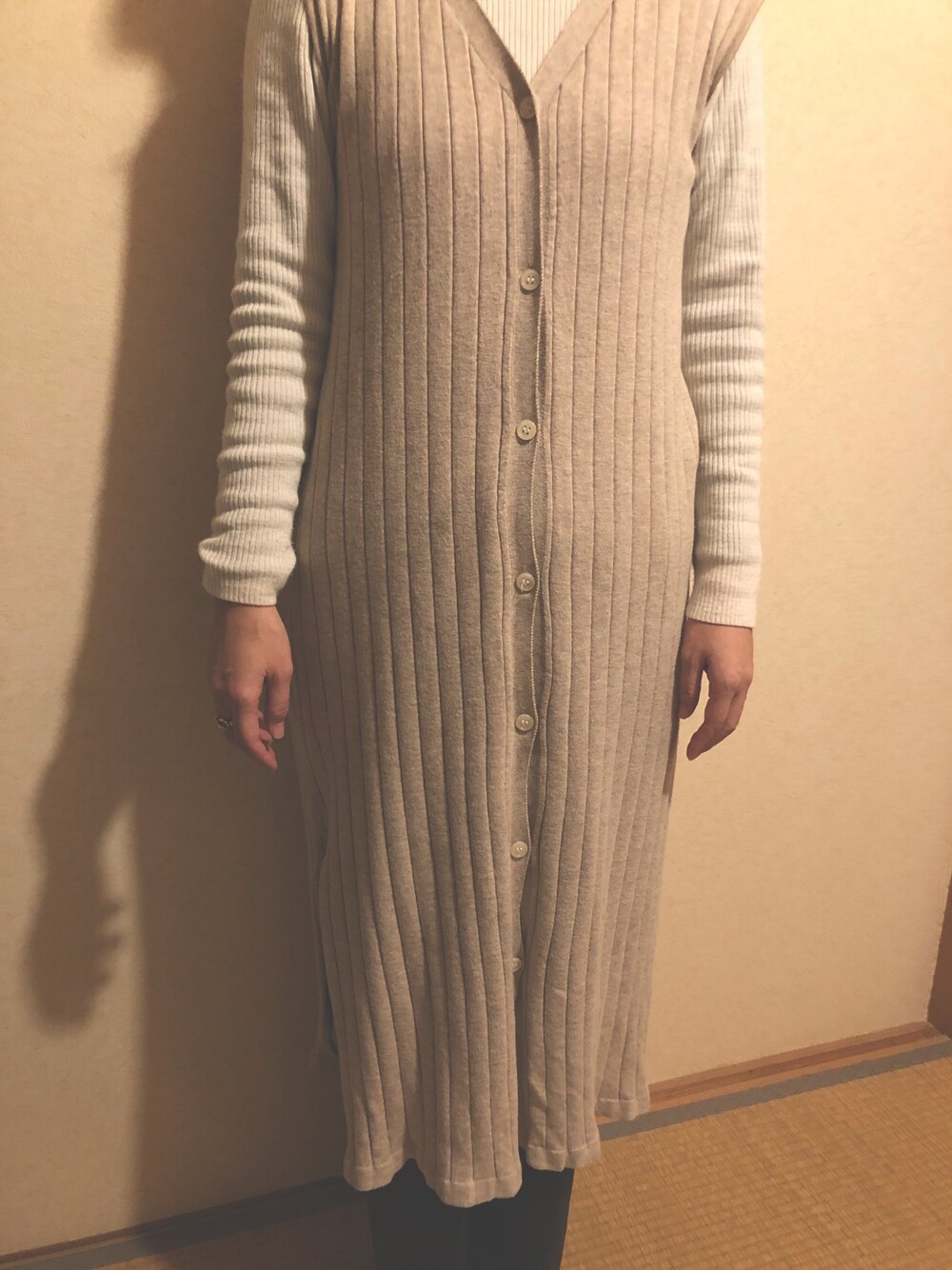 ニットベストのワンピース型閉めたり開けたり重宝します✨