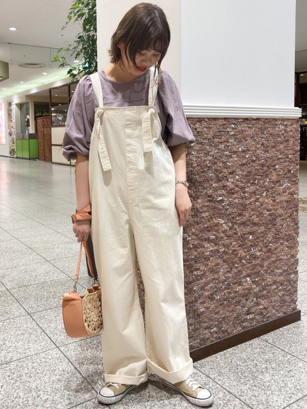 【tops】Fサイズ どちらを前にしても使える2wayアイテム◎ チュニック丈ですが、 生地が薄くて軽いので 私は今回オーバーオールの インナーとして合わせました☆ 【overall】Fサイズ 綿100%で着心地がとても良いです◎ 丈を気持ち長めにしてロールアップしました。 バンツの形もストレートタイプなので、広がりすぎず綺麗です◎ 【bag】春夏ピッタリのデザインです。