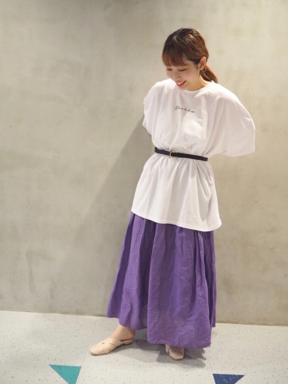ご覧頂きありがとうございます🗣♡ 紫! パープル! 珍しく色物です!!🍆🍆 このスカート超ロングで可愛いんです🥺 大きめのプリントTシャツで合わせるとカジュアルに着れるのでオススメです! サンダルは綺麗めを使うとカジュアルすぎないコーデになります👍🏻カワイイ なんか手が消えてるポーズですね…笑 ポージング?難しい………