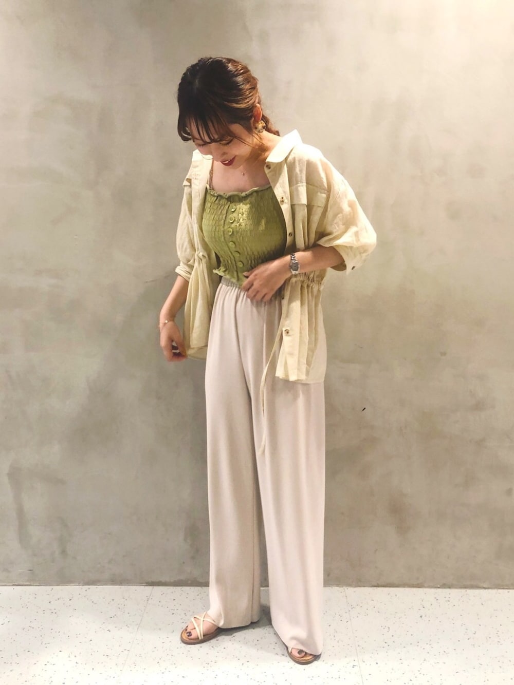 ご覧頂きありがとうございます🗣♡ ピスタチオカラーのビスチェです! 上にサラッとしたシャツを合わせた渾身の可愛いです!!💁🏼♂️🌷 セレクトモカのパンツも可愛くて履きやすいのでいっぱい履いちゃいます🤦🏼♂️💦 着回しがたくさん出来るので、買って良かった物の1つです◎