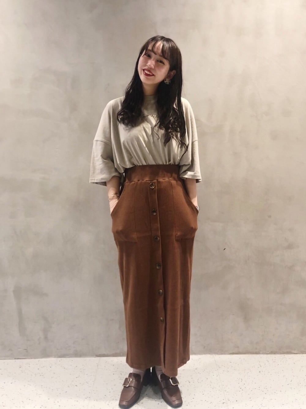 ご覧頂きありがとうございます🗣 ライトカーキ×ブラウン 意外と合わせがいいです◎🙋🏻♀️ このTシャツは春夏秋使えるのですごく便利なんです🥺✌🏻️ 天才………そしてかわいい……。