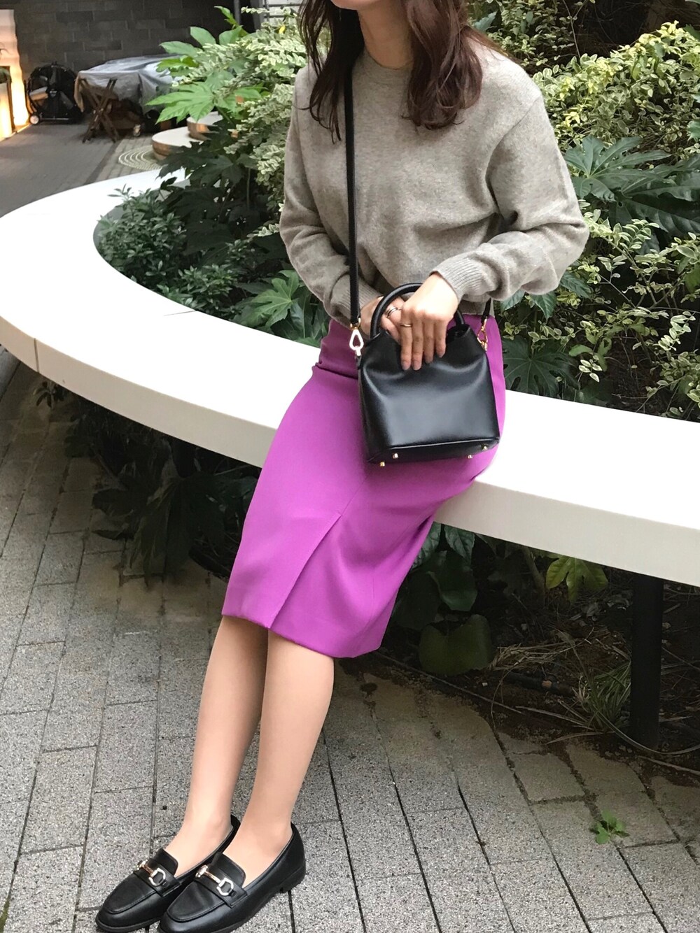一目惚れしたスカート🥺💘 自分の身長に合った丈感と、素材のハリ感が可愛くてお気に入り。 ピンクとグレーは相性いい