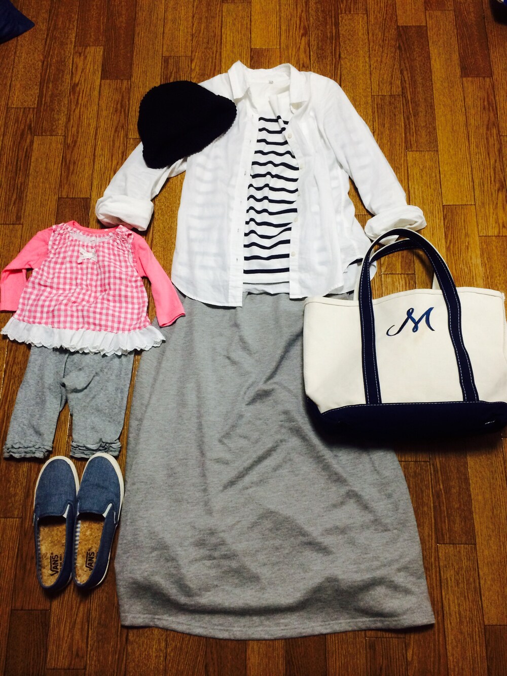 ニット帽:mystic ボーダーカットソー:無印良品 マキシ丈スカート:titivate スリッポン:VANS トートバッグ:L.L.Bean