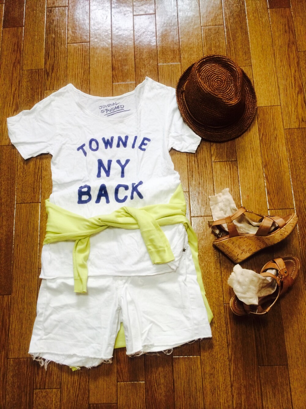 麦わら帽子:ブランド不明 Tシャツ:JORNAL STANDARD カーディガン:UNIQLO デニム:ブランド不明 靴下:靴下屋 サンダル:ブランド不明