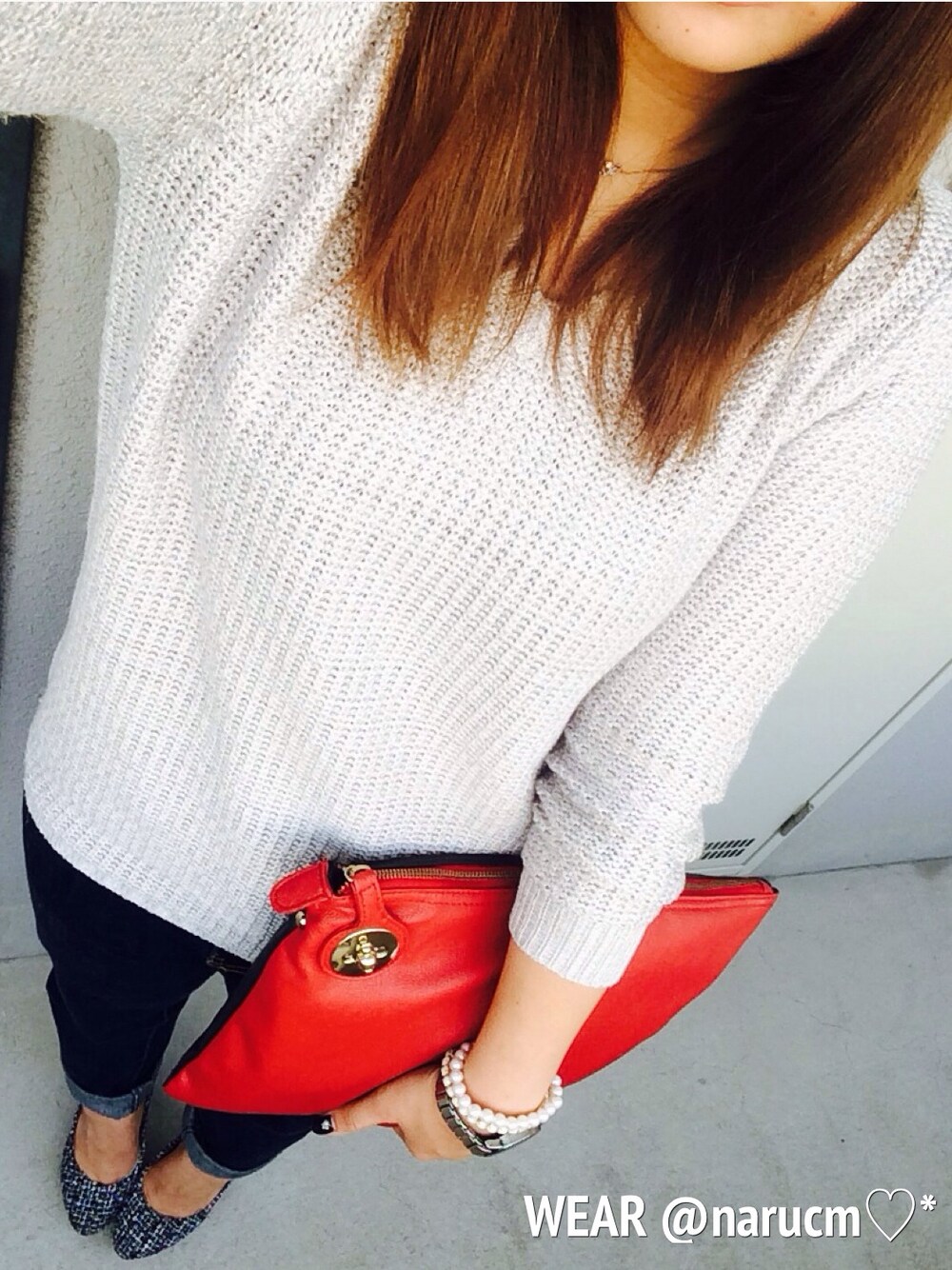 ◎2014.09.16 ニット/LE SOUK パンプス/ブランド不明 こんにちは(^O^) いつもSALE、フォロー ありがとうございます☆ 今日はグレーのニットに ボーイフレンドデニムで 綺麗目シンプルコーデ* カラーのないコーデになりがちな秋冬に 最近よく登場する赤クラッチ! 早く冬にならないかな〜(´-`).。oO