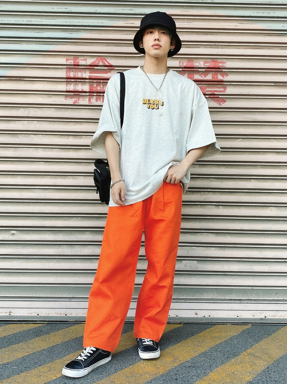 いつもご覧くださりありがとうございます😊 今回のコーデは…… スケーターコーデです!!🛹 上のTシャツはヘビーウェイトなので生地もしっかりしてます! 上のTシャツの色をシンプルにしておけば蛍光色のオレンジだって履けちゃいます!!🔥 個人的にはお気に入りのコーデなのでオススメです!✨ インスタのプロフィールにあるURLから今までの着用商品が購入出来ますのでインスタの方もよろしくお願いします🙇♂️