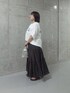 暑い時期に欠かせないTシャツコーデです。 スカートは軽い見え方と着心地が◎ 今回はブラウンですが、ドットなど、 柄やカラーの幅が広い点も魅力です。