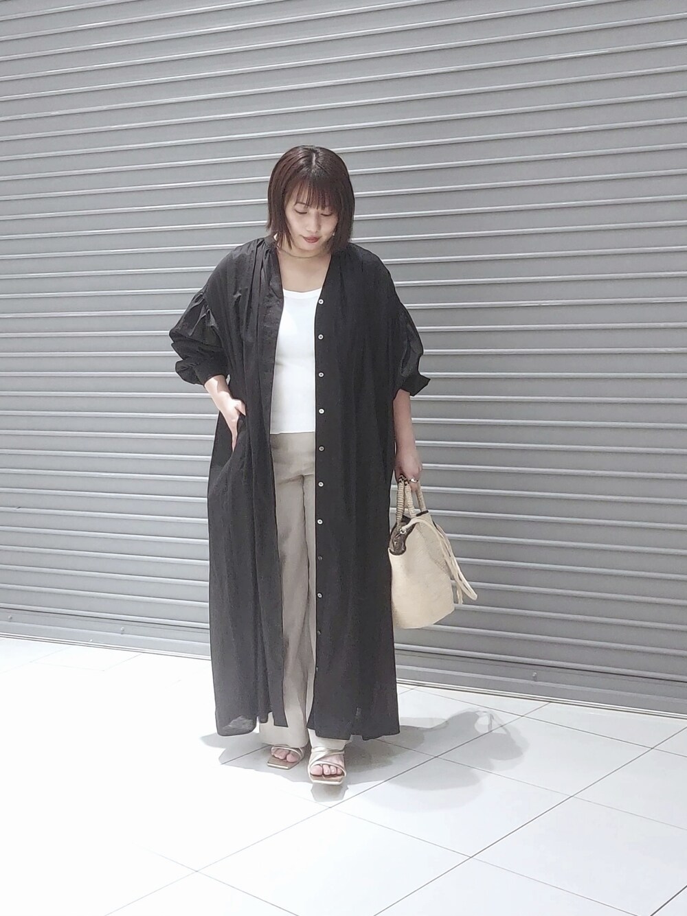 nar18(RIVE DROITE 阪急西宮ガーデンズ)のワンピース「【Yossshiiii企画】コットンリネンギャザーシャツワンピース」を使ったコーディネート
