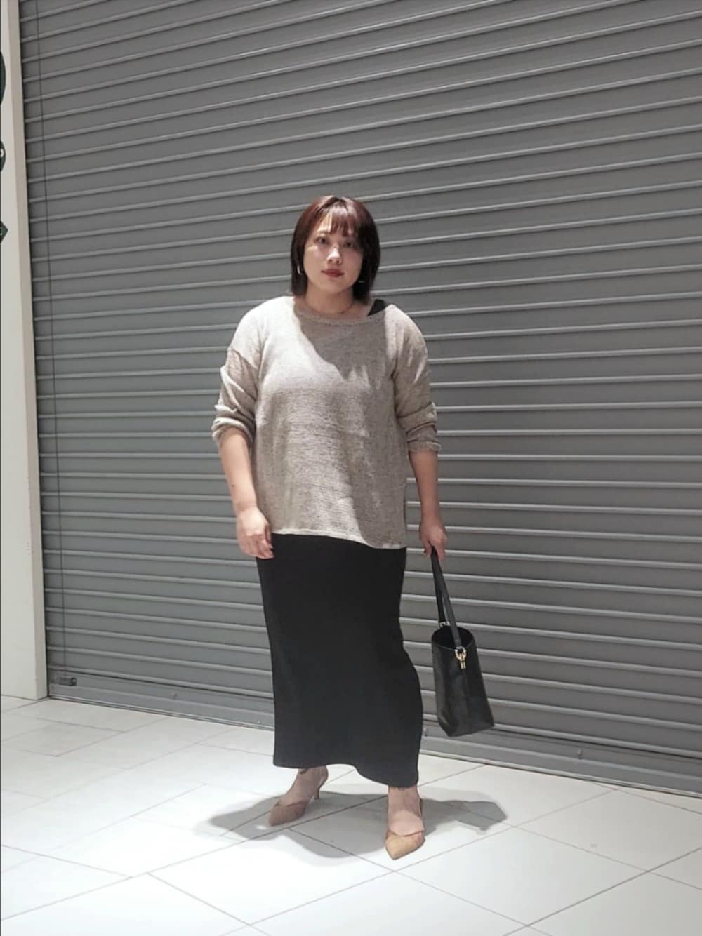 シアーニットに大人気のワンピースで 気温の高い今の時期でも 少し晩夏を意識できるコーディネートです。 ニットは、麻混なので肌離れも◎ 着ると軽さを実感して頂けます。