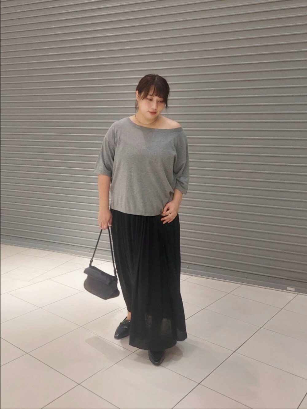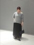 LOOSE KNIT Teeは適度な抜け感を出せて デニムなどのカジュアルなスタイルから 今回着用のギャザースカートまで 様々なボトムスと合わせやすい点がオススメです。 グレーとブラックの展開なので モノトーン好きさん必見です。