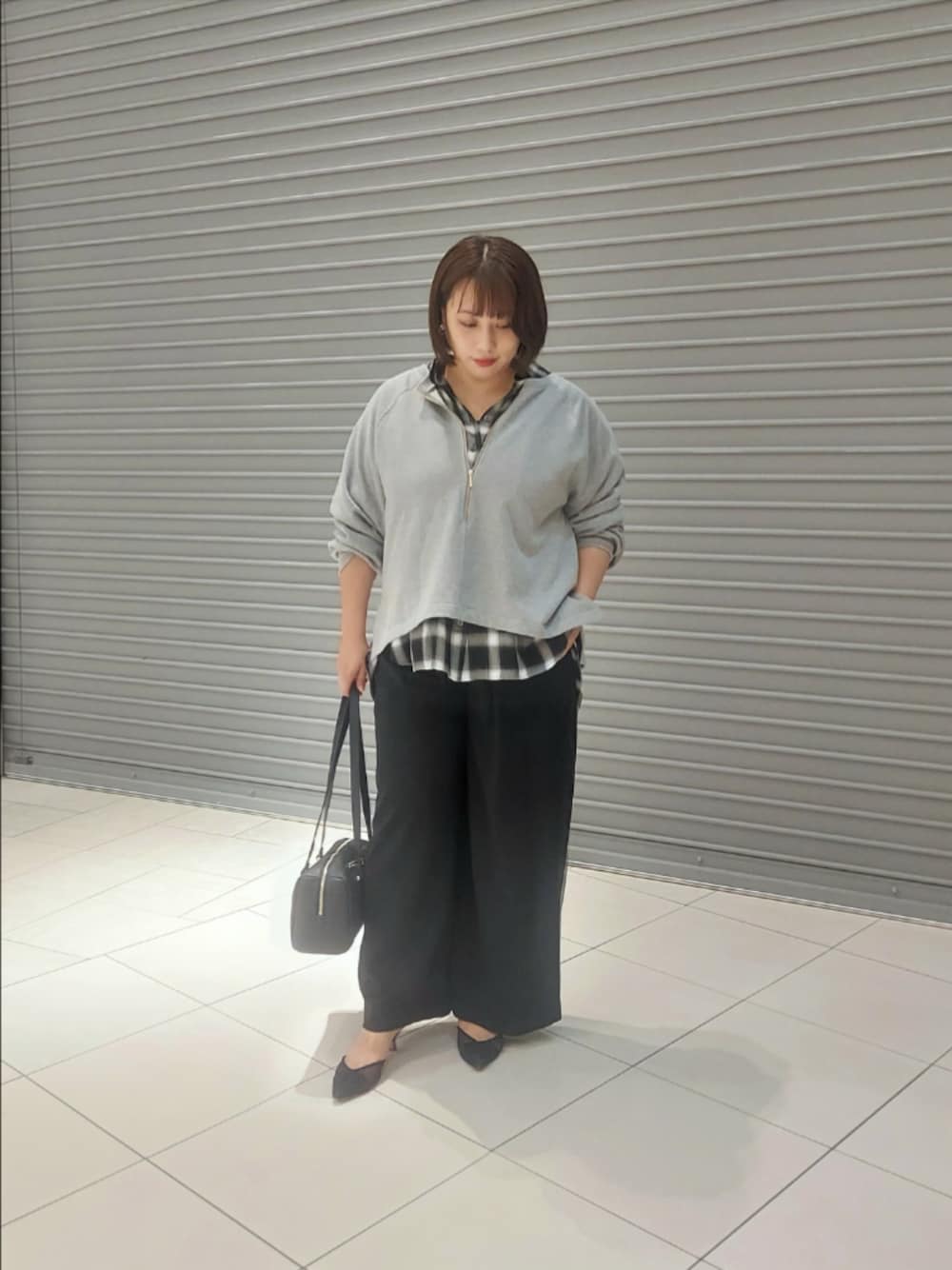 ハーフZIPスウェットと チェックシャツをレイヤードし シンプルな配色ながらも柄が印象付くように コーディネートしております。 どれも人気な商品ですが 生地がさらりとしている為 長い期間お使い頂けます。