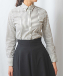 身長 : 150 cm 骨格タイプ : ウェーブ シャツ:0(7号)Sサイズ スカート:1(9号)Mサイズ ストライプシャツとフレアスカートで甘辛MIXスタイル。 さり気なくラメ糸が織り込まれたシャツはストレッチ素材で着心地抜群。 ジャガード素材のスカートもウエストが総ゴム仕様なので穿き心地ラクラクです