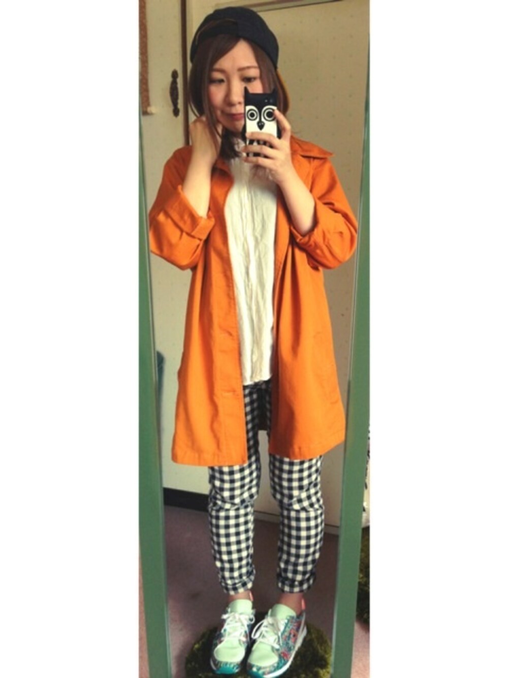 女の子らしいギンガムチェック と 鮮やかな 春色アウター* でも主役は ツモリチサト。
