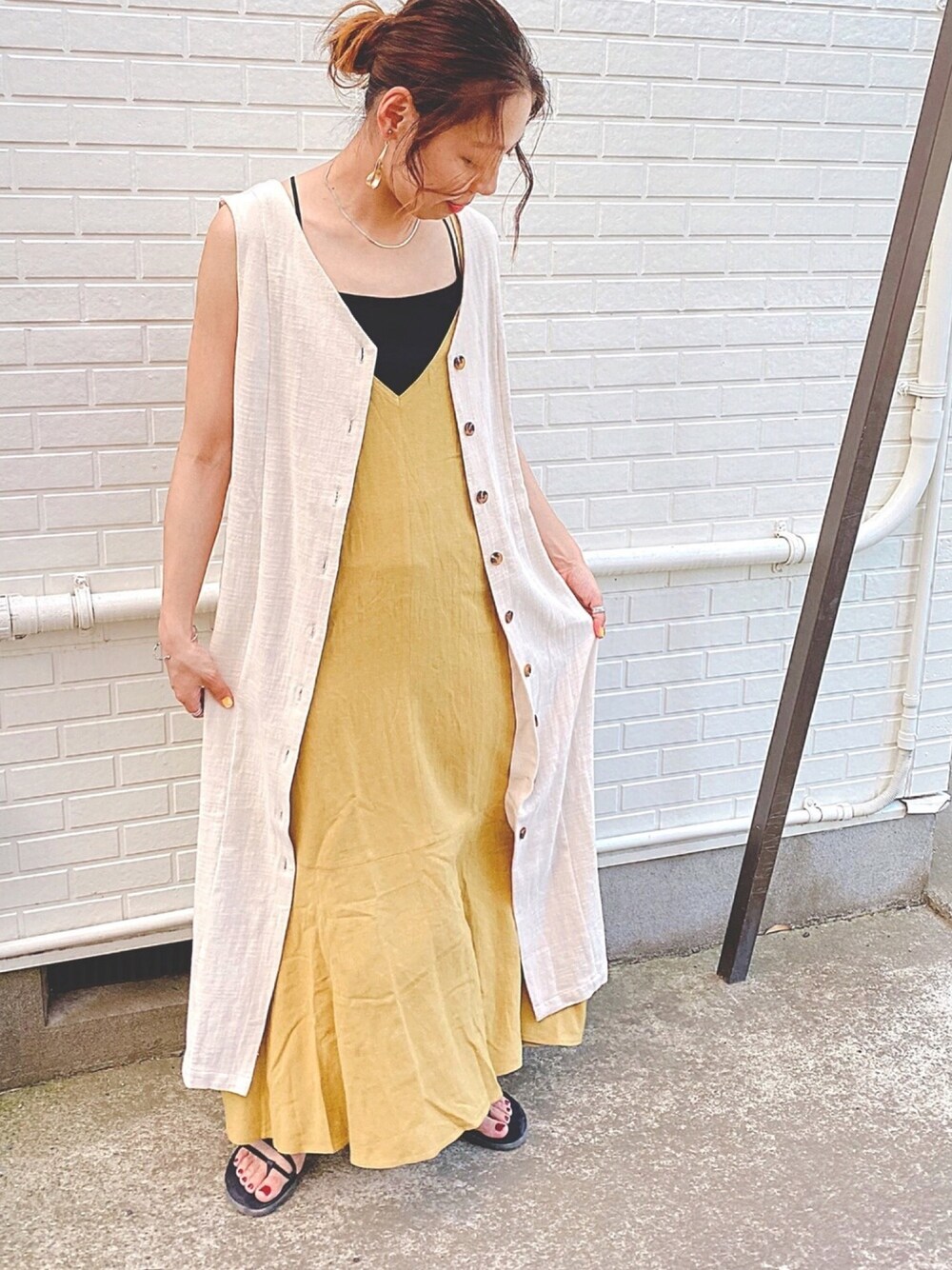 キャミワンピースの着回しコーデ🕊 涼しくジレワンピを重ねてみました✔︎