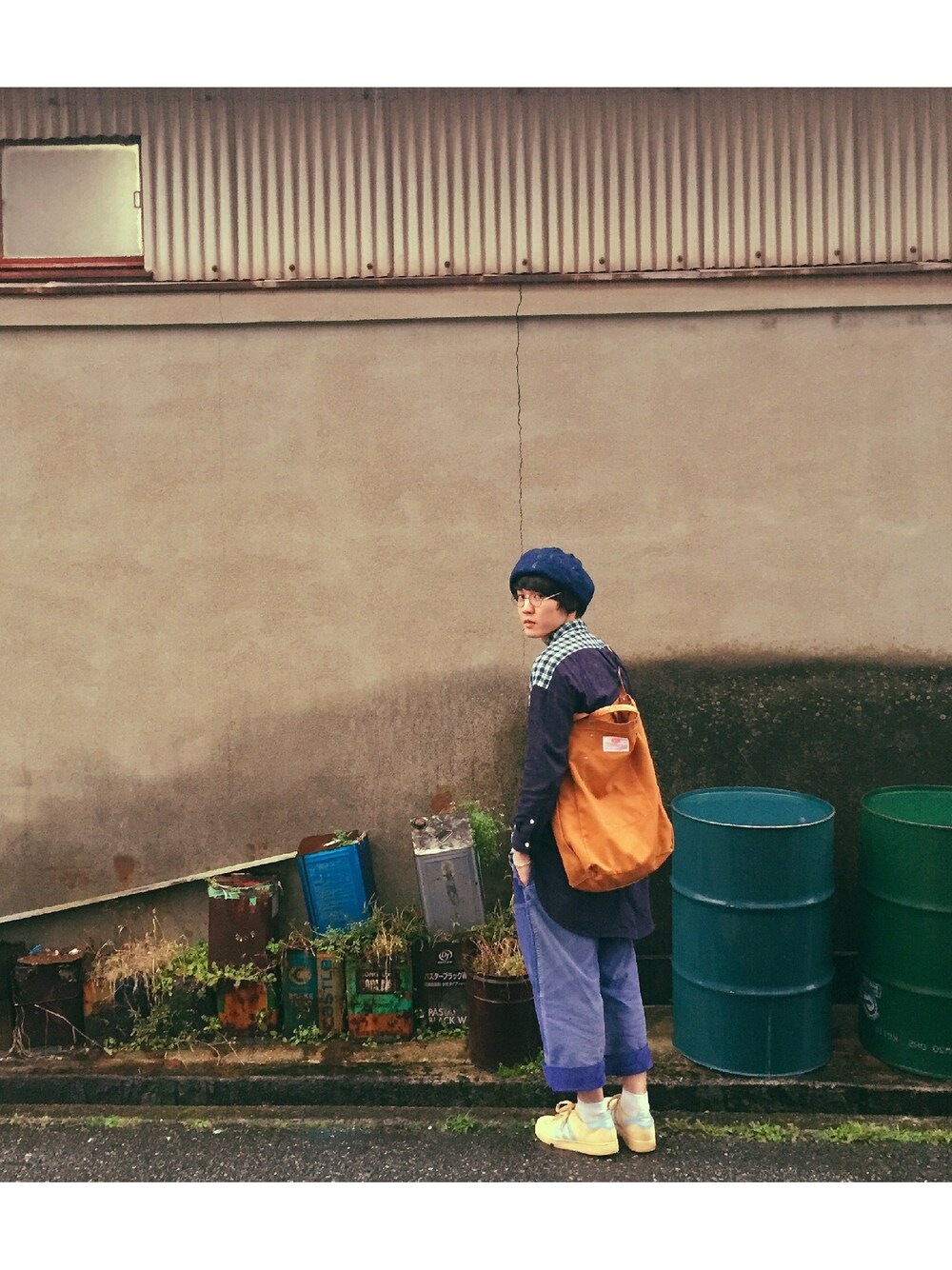 . 雨の日。 帽子:voo シャツ:niko and … パンツ:used 靴:adidas 鞄:bag'n'noun .