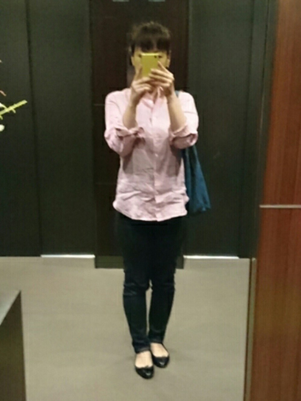 ピンクのギンガムチェックのリネンシャツ、初着꒰✩'ω`ૢ✩꒱ 汗じみ出来るわーーー(笑)。 2016/05/13