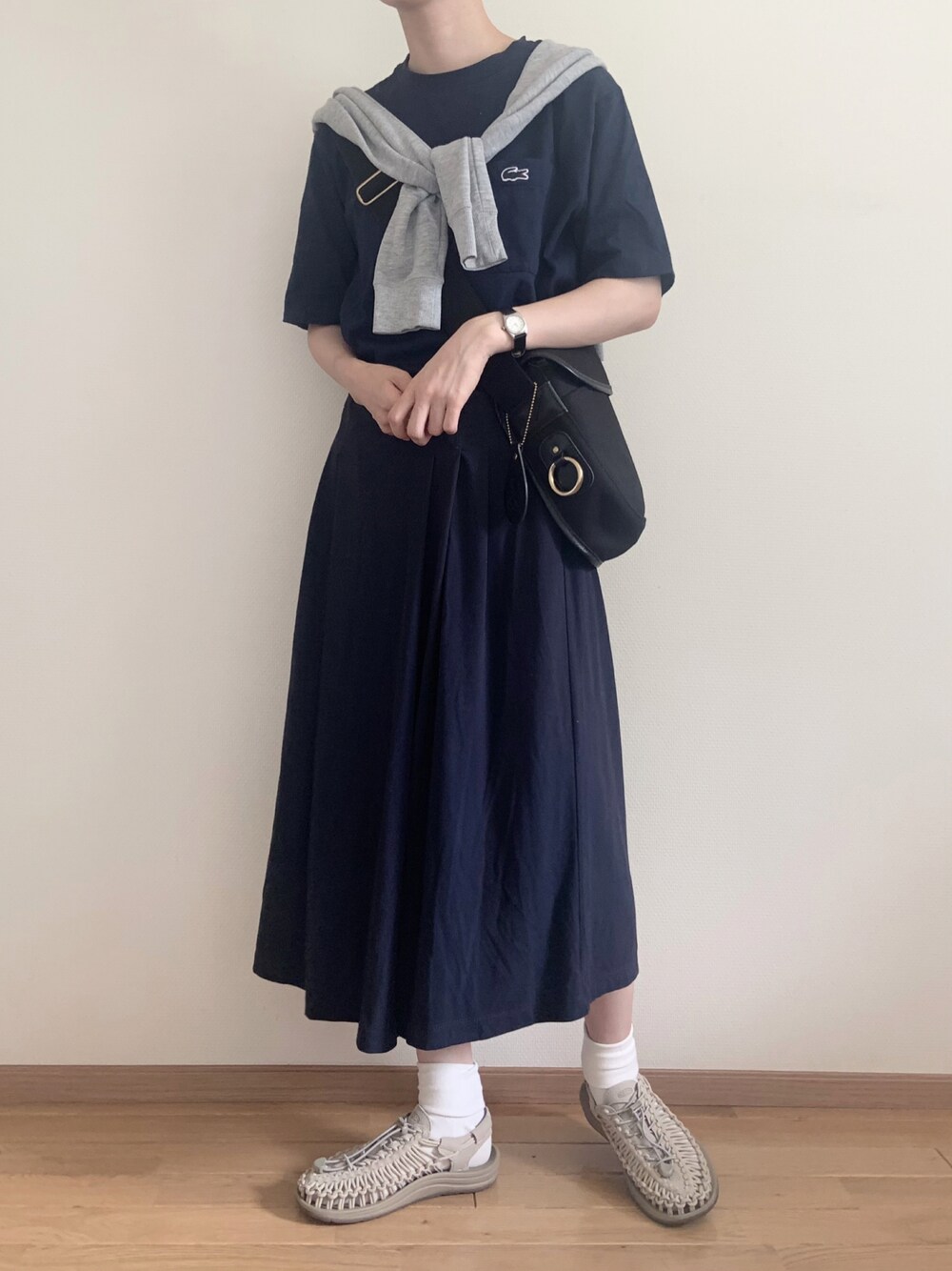 エセ・セットアップの略であるヽ(•̀ω•́ )ゝ(私の勝手な造語) たまたまネイビーの色味が同じだったからセットアップというかワンピース風に(◜ᴗ◝ ) スカートにも見えるガウチョは 何度も着てるikkaで買ったやつჱ̒ ᷇ᵕ ᷆ )✨️ウエストのびのび… ---------------------------------------------- グレーパーカ…retro girl