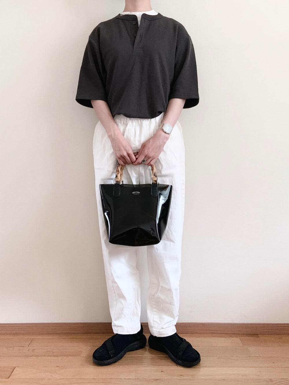 なりの介のTシャツ/カットソー「ドライワッフルヘンリーネックT」を使ったコーディネート