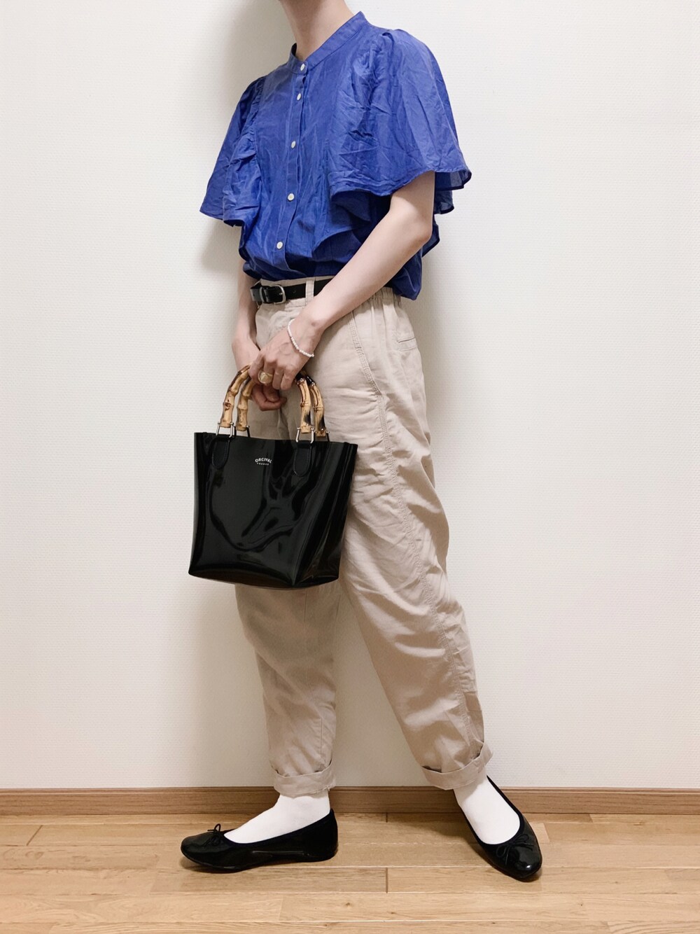 なりの介のシャツ/ブラウス「バタフライスリーブシャツ」を使ったコーディネート