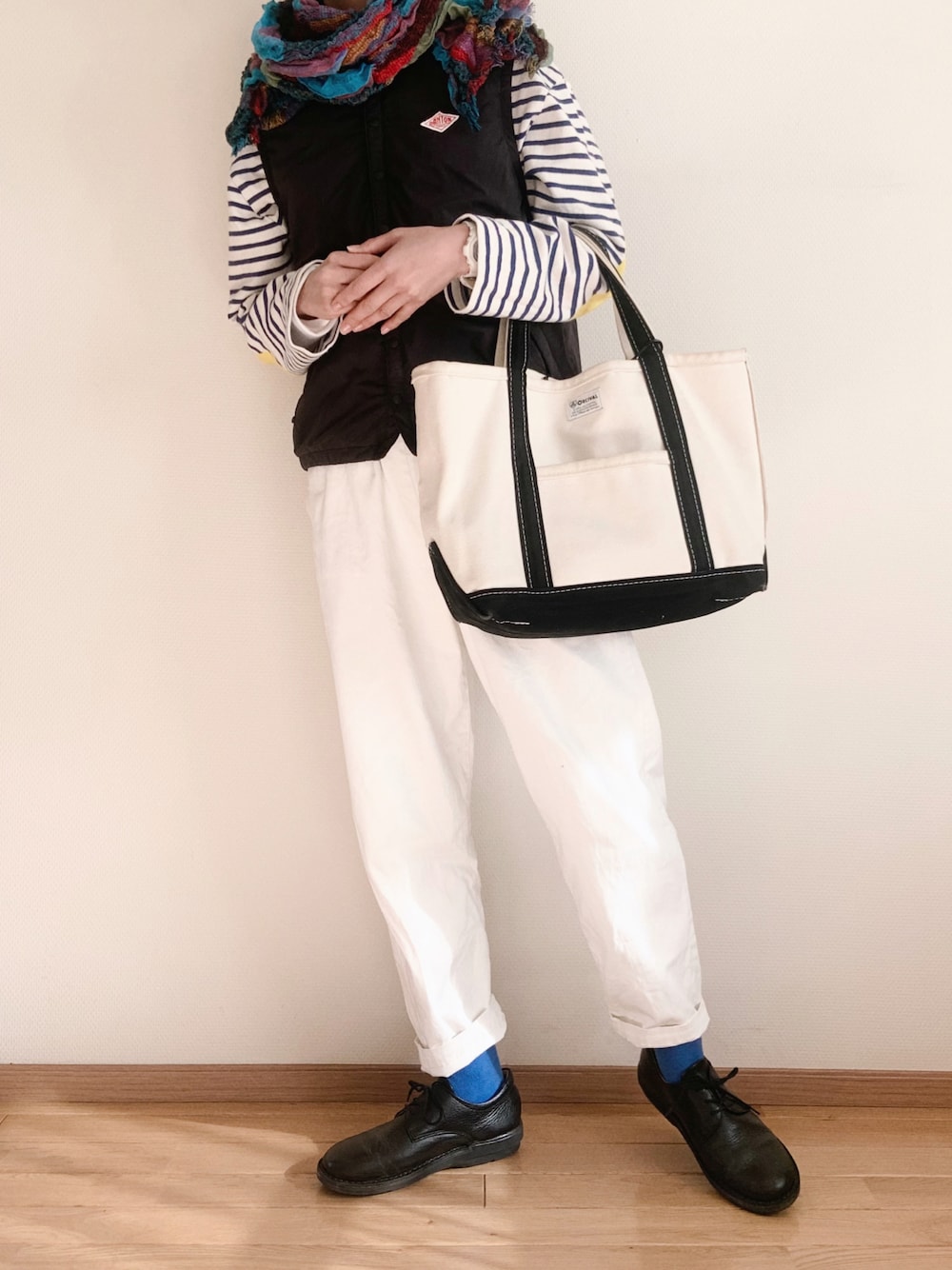 カラフルな襟巻きとかげみたいなストールは 10代の終わりに買ったもの とても久々に巻いた┌|∵|┘🌈♪└|∵|┐♪└|∵|┘♪ 髪をマッシュにしたら、カジュアルな服装が合わせやすくなってちょっとヘンテコなアイテムを身につけても浮かなくなって大変よい◎