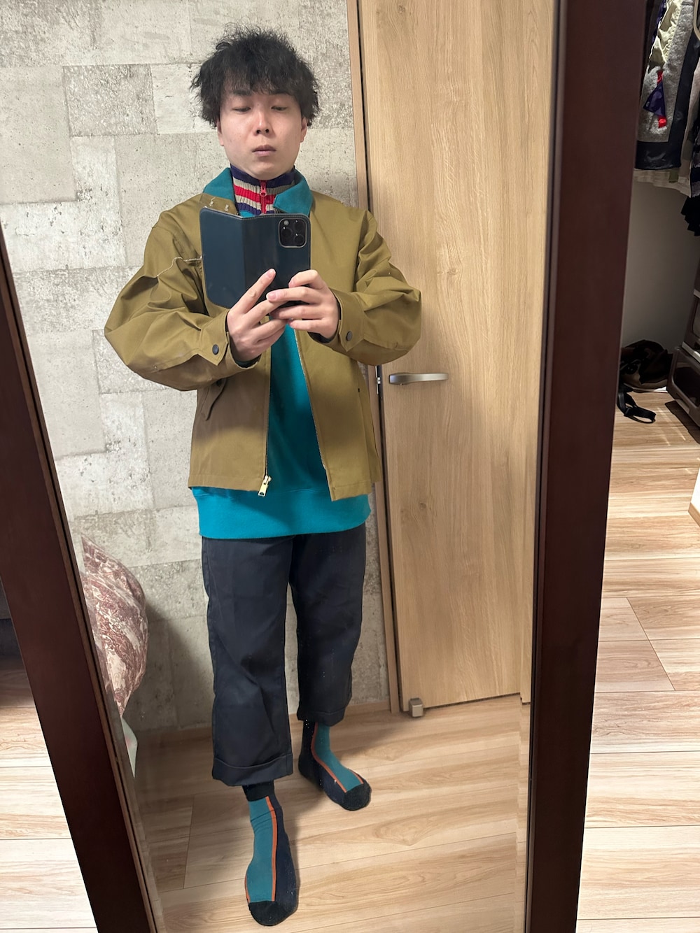 カラーのブルゾン着てみました✨ インナーと靴下を色合わせて見ました!