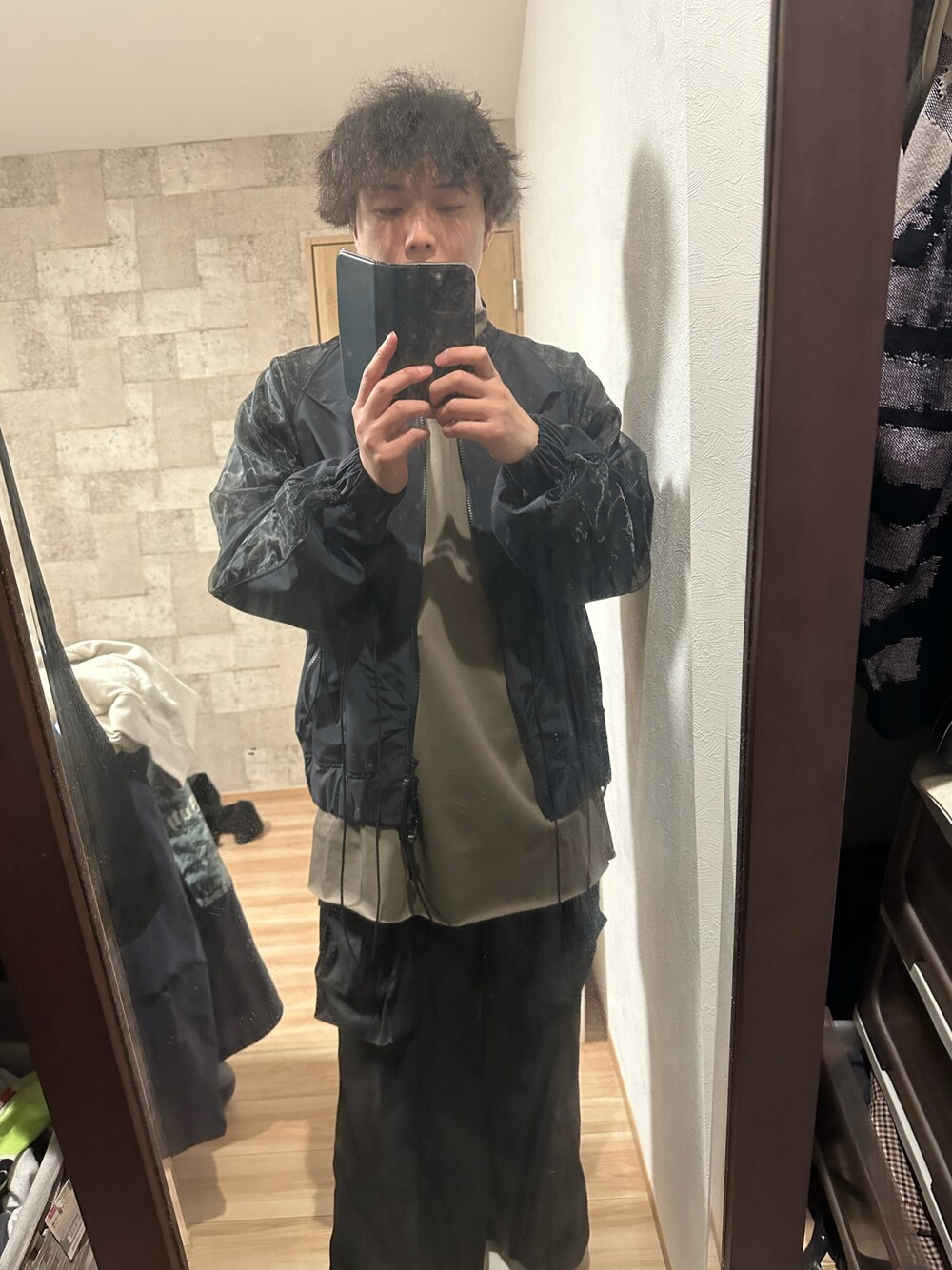 ヨシオクボのブルゾン家で着てみた^_^ ショート丈だからロングカットソーでレイヤードスタイル楽しめます!