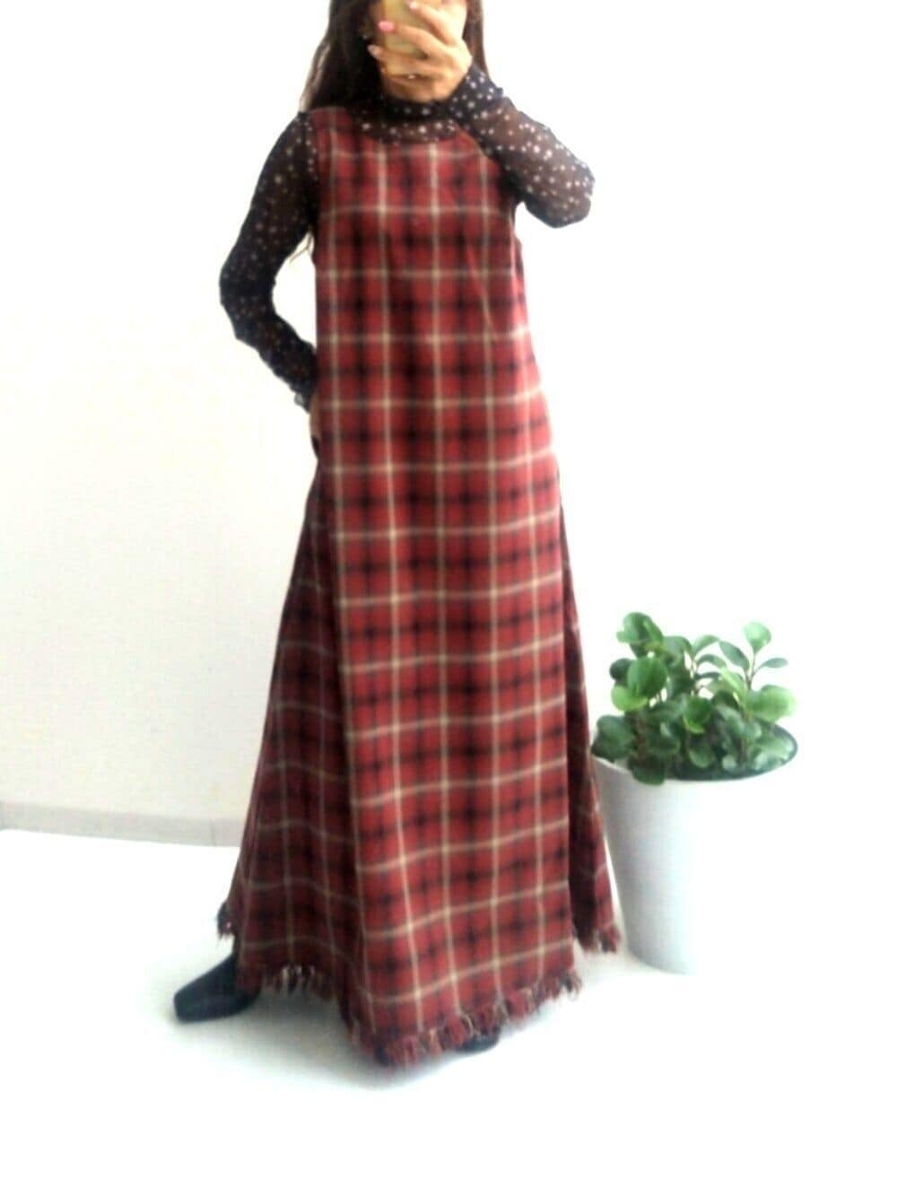 寒くなる時期にはインナーにタートルニットを合わせたレイヤードスタイルがオススメ。 インナーを変えれば、長く着れるワンピースです。