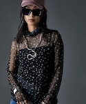 naru(nissen本店)のTシャツ/カットソー「星プリントハイネックプルオーバー(透け素材)<大きいサイズ有>GEVS.」を使ったコーディネート