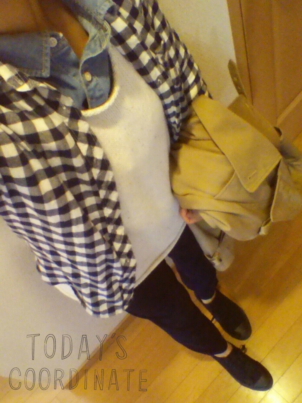 ユニクロのサイトにあった、シャツonニットonシャツ✨ やってみた💡 素材によってはモコモコします⤵ 中のシャツは薄め、外のシャツ厚手の方が良さそう⤴ 私は逆パターンになっちゃいました😅 寒いのでトレンチコートにライナーを付けました💡