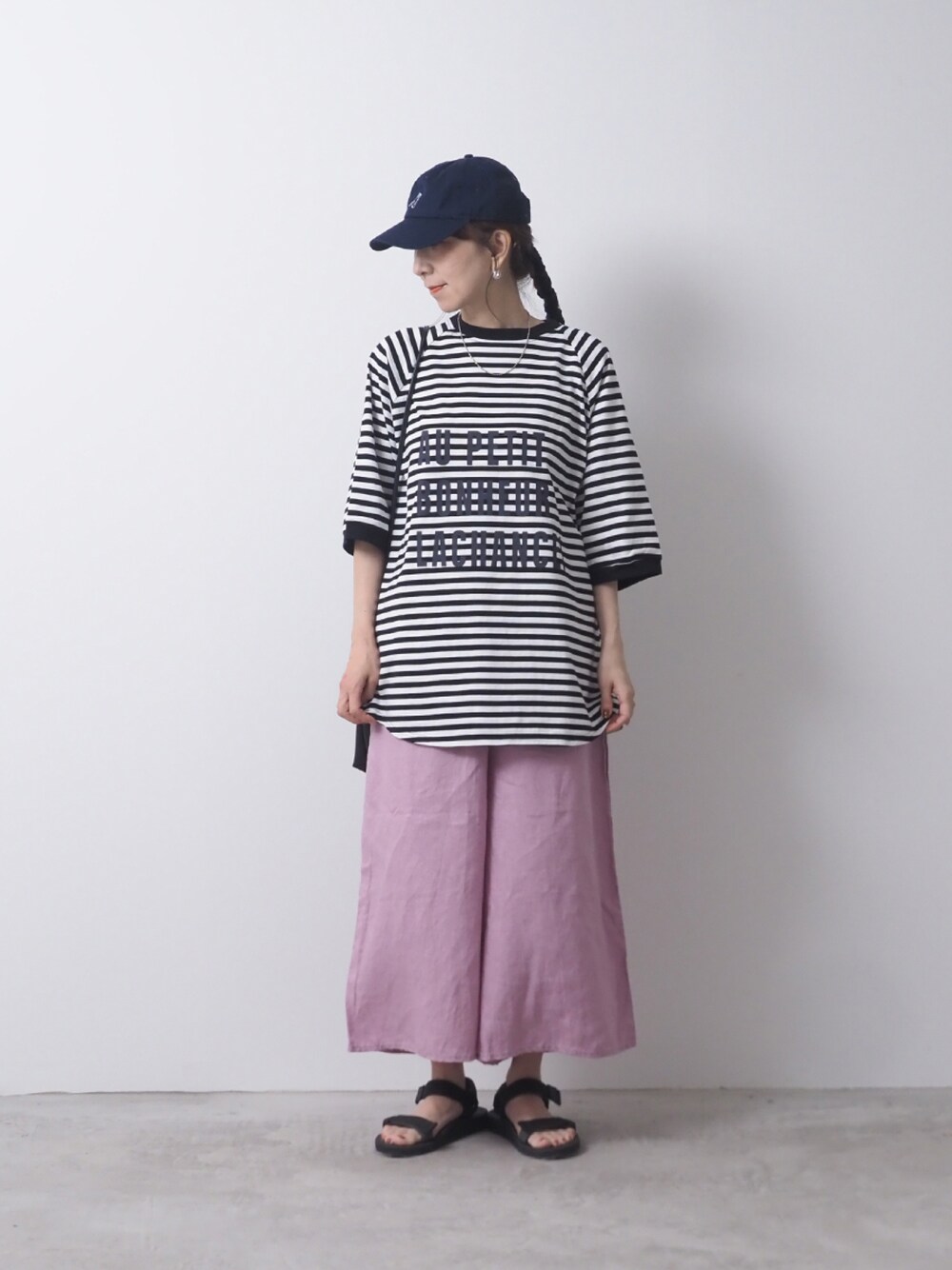 ホワイト系のTシャツ/カットソー、ピンク系のパンツを着用したレディースの夏コーディネートの2枚目の写真