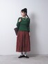 グリーン系のニット/セーター、ブルー系のスカートを着用したレディースの夏コーディネートの2枚目の写真
