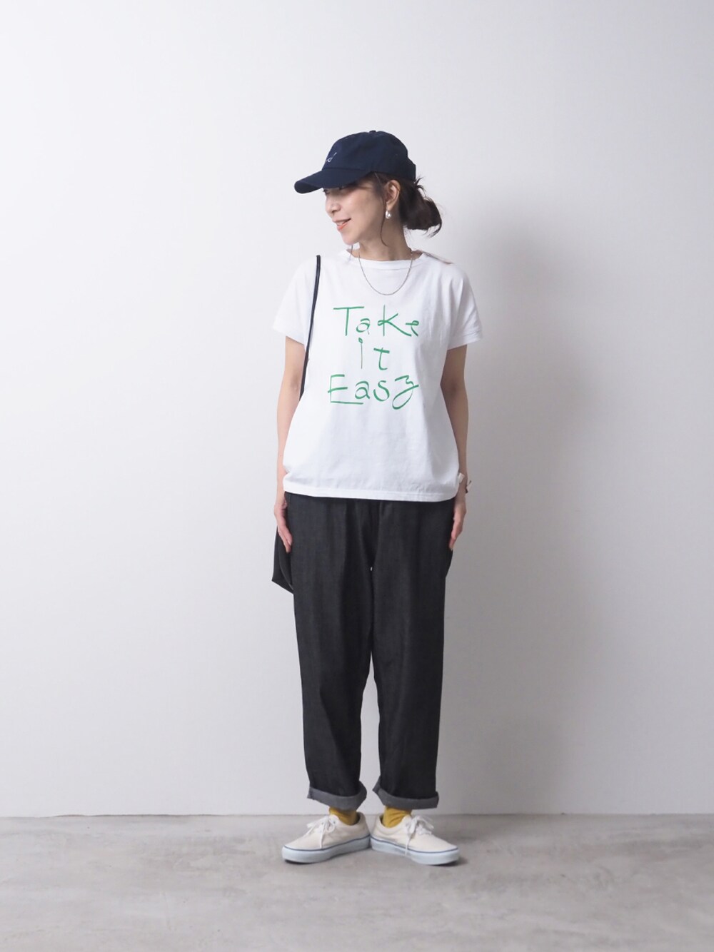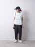 ホワイト系のTシャツ/カットソー、ブラック系のデニムパンツを着用したレディースの夏コーディネートの2枚目の写真