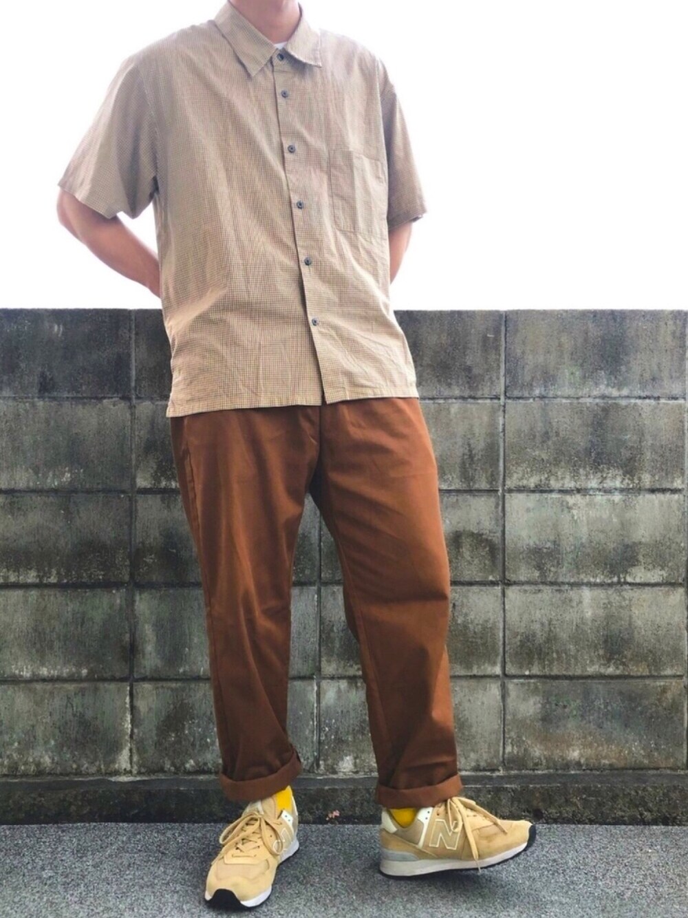 茶系コーデ! 半袖シャツはロンTと合わせたり タックイン・アウトでも 雰囲気が変わるので季節問わず 使えるしコーデの幅が 広がるのでおすすめです^ ^