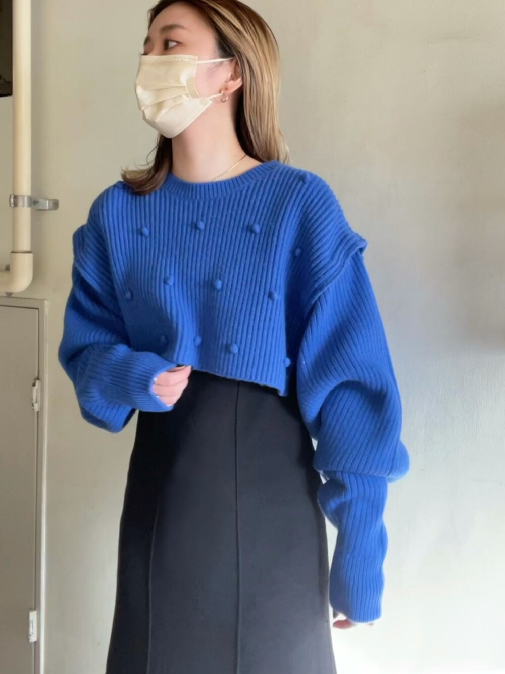 NARUKAのニット/セーター「【led.tokyo】2WAYポンポンミドルゲージショートニット」を使ったコーディネート