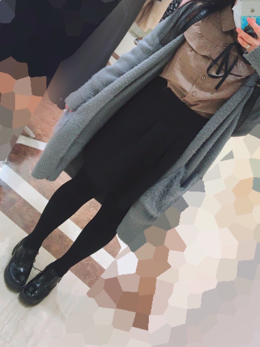 ブラウン系のトップス、ブラック系のスカートを着用したレディースの冬コーディネートの1枚目の写真