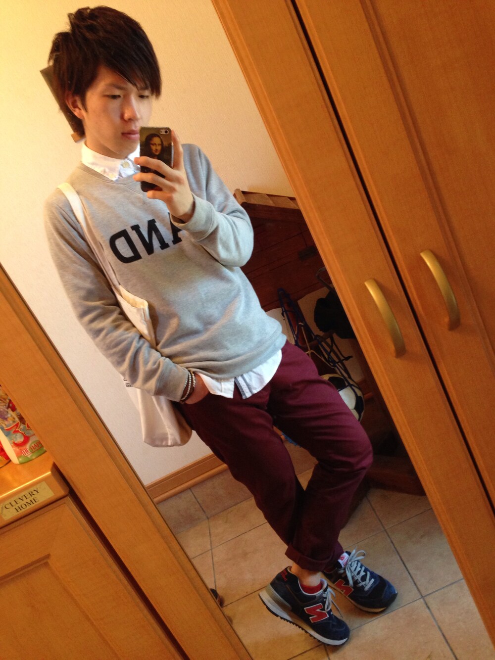とーやのスニーカー「New Balance 574 ネイビー×ピンク」を使ったコーディネート