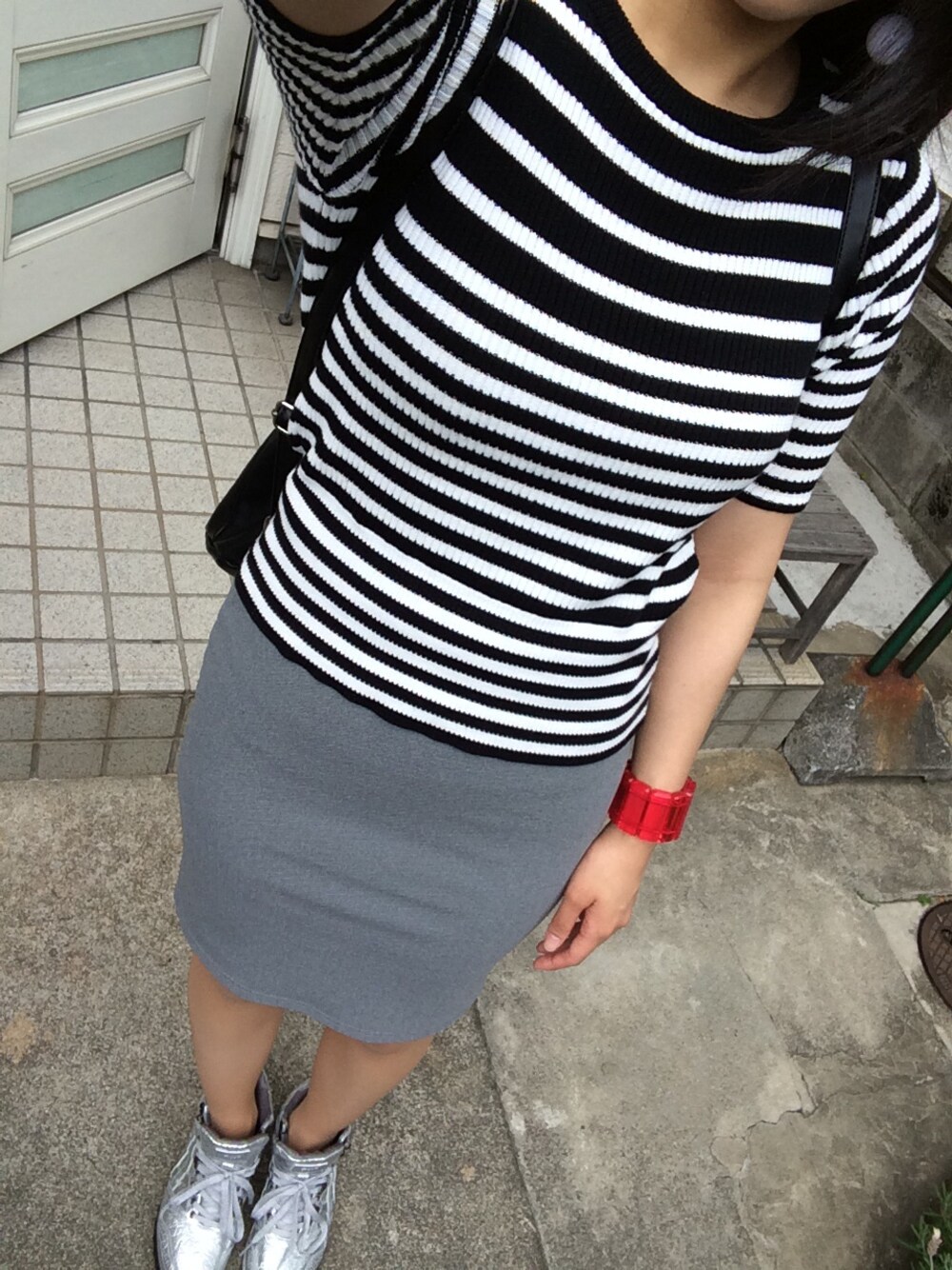 トップス:SLY ペンシルスカート:? スニーカー:オニツカタイガー 時計:NIXON