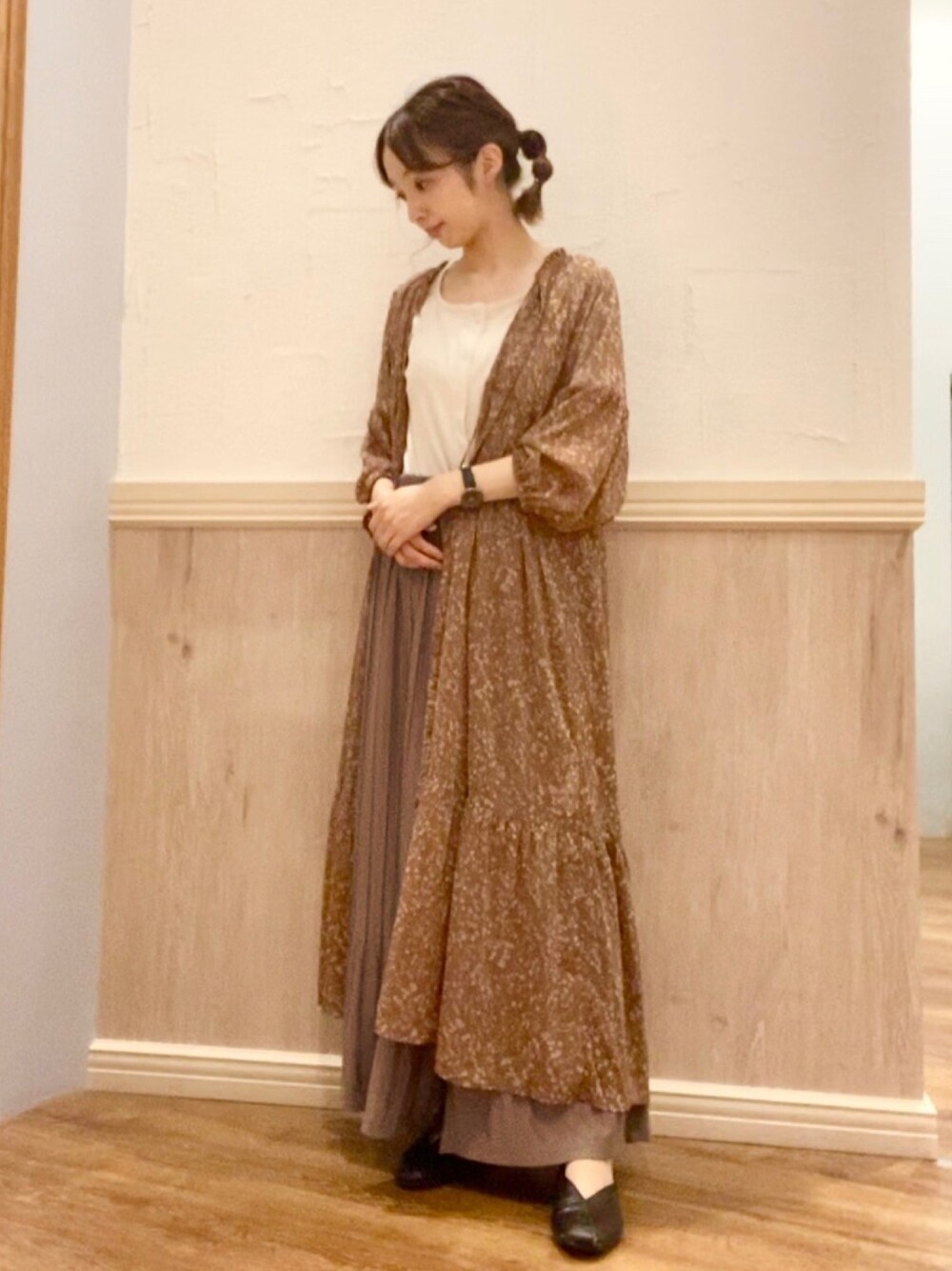 テラコッタの花柄が秋らしいワンピース